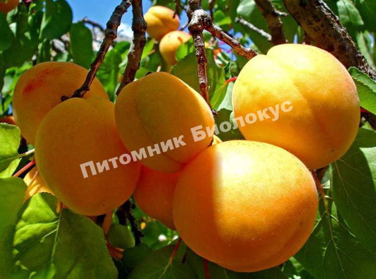 Отлично подходит для Подмосковья. Деревья достигают в высоту 4-х метров, имеют раскидистую крону. И отлично переносят зимы. Абрикосы мелкие, всего 15 г., имеют хорошие вкусовые качества, мякоть среднесочная, сладкая, без кислинки. Плоды хороши для употребления, как в свежем виде, так и зимних заготовок. Зимоустойчивость средняя, зато дерево хорошо переносит засуху.