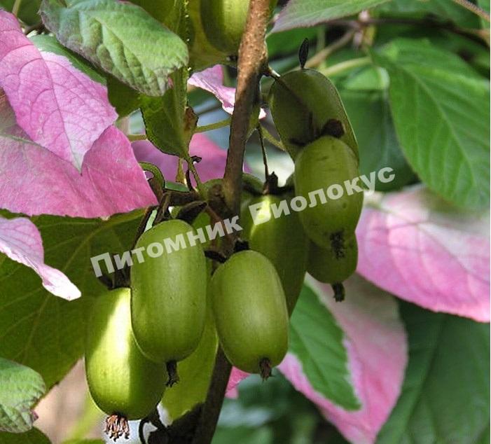 — Является опылителем для любого сорта актинидии, рекомендуется сажать 2 мужских вида на 10 женских. Отлично подойдет для декоративных целей и украшения сада.