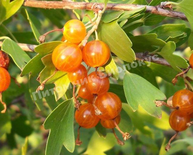 Ягоды зреют неравномерно. Они продолжительное время держатся на ветвях и не осыпаются. Для опыления важно на участке посадить несколько кустов золотистой смородины — один куст не даст плодов. Ягоды вырастают крупными, каплевидными и овальными — вес одной ягоды достигает 0,7-3,9 г. Они черного цвета с золотистым, желтым или красным оттенком в спелом состоянии. У них кисло-сладкий вкус. Мякоть сочная, без послевкусия. Они не пускают сок, который обычно красит посуду и пальцы.