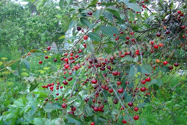 Одним из старейших является сорт вишни «Владимирская». Говорят, что еще сын Юрия Долгорукого велел высадить вишневые сады вокруг города Владимира. Отсюда и пошло его название. Может это всего лишь легенда, но вишня «Владимирская» сейчас широко распространена. Вырастает дерево средних размеров, с раскидистой кроной. Зацветает в начале мая чудесными белыми цветами. Плоды созревают в начале июля. Это крупные темно-бордовые ягоды с плотной мякотью превосходного вкуса. Их можно кушать свежими, готовить наливки, соки, компоты, начинку для пирога. Сорт выращивают в промышленных масштабах.